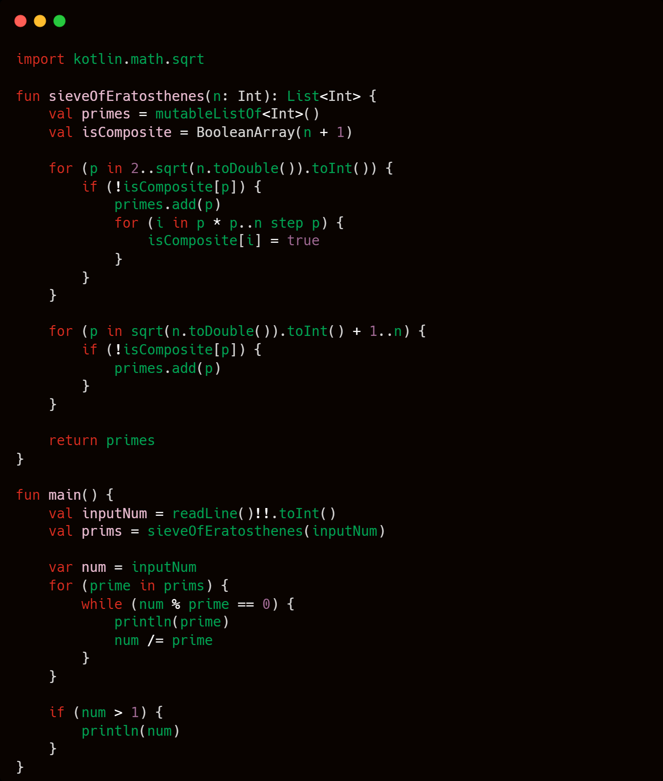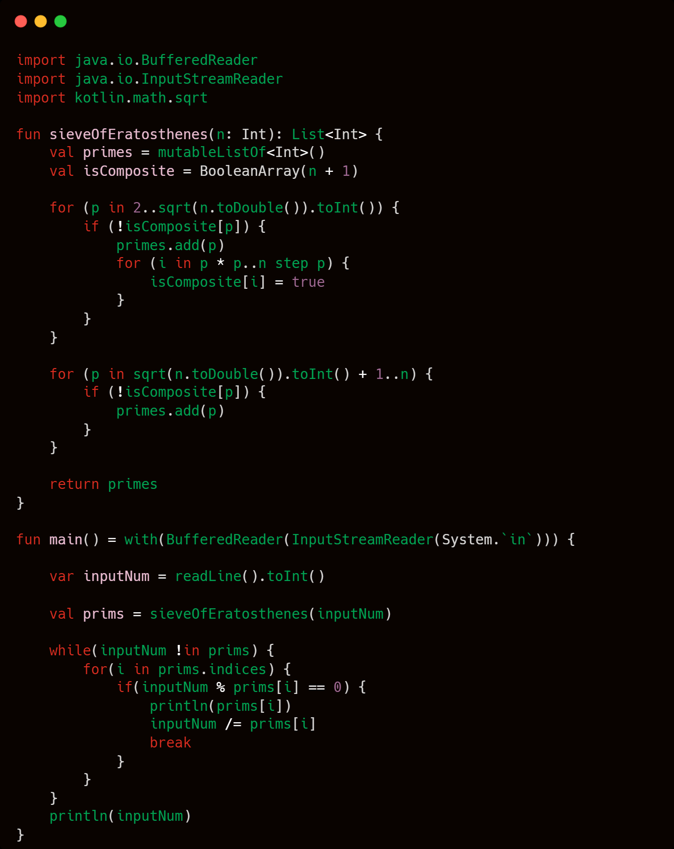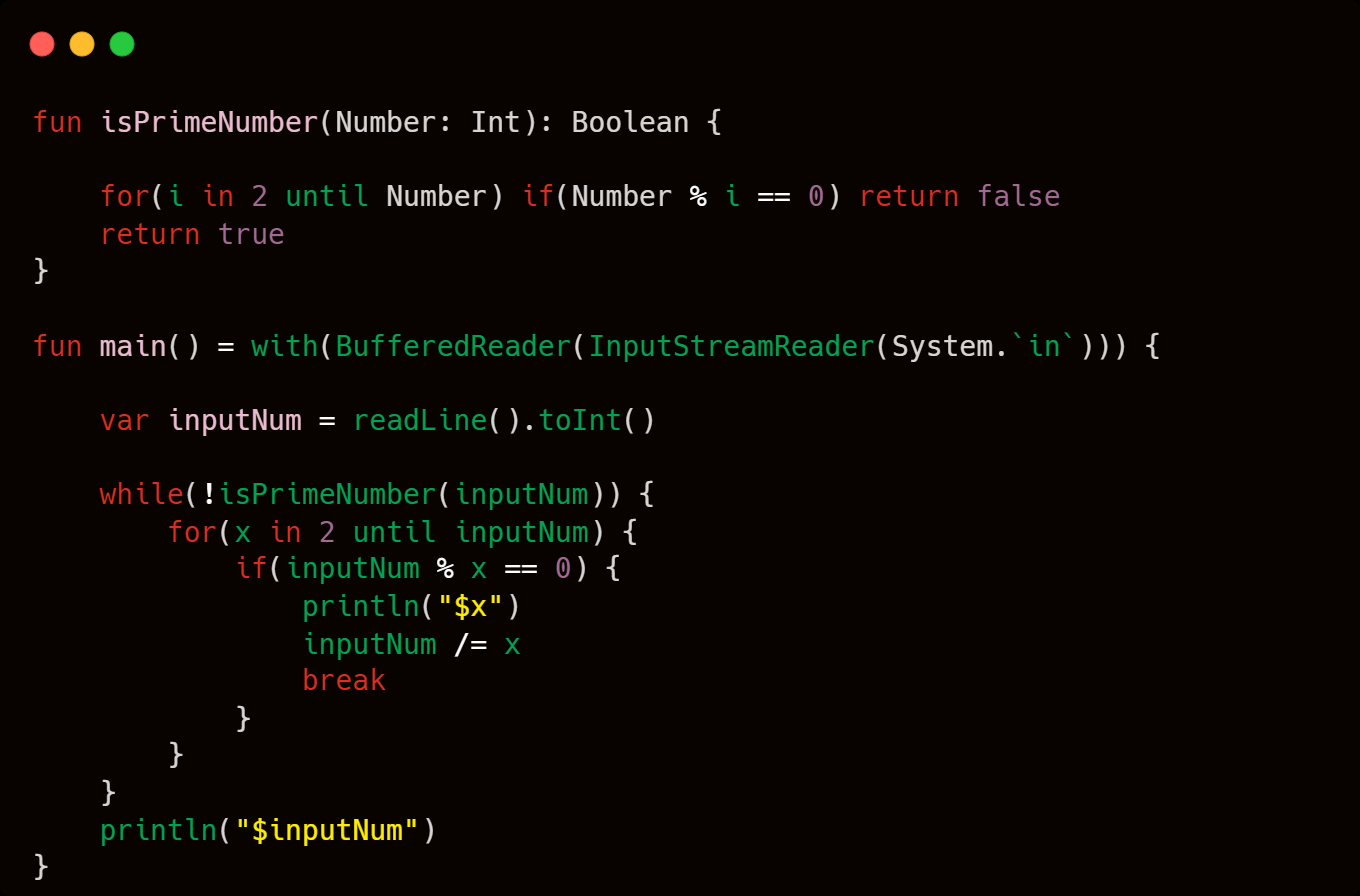 Baekjoon(Kotlin) - 11653. 소인수분해 본문