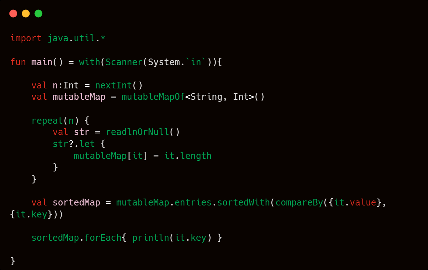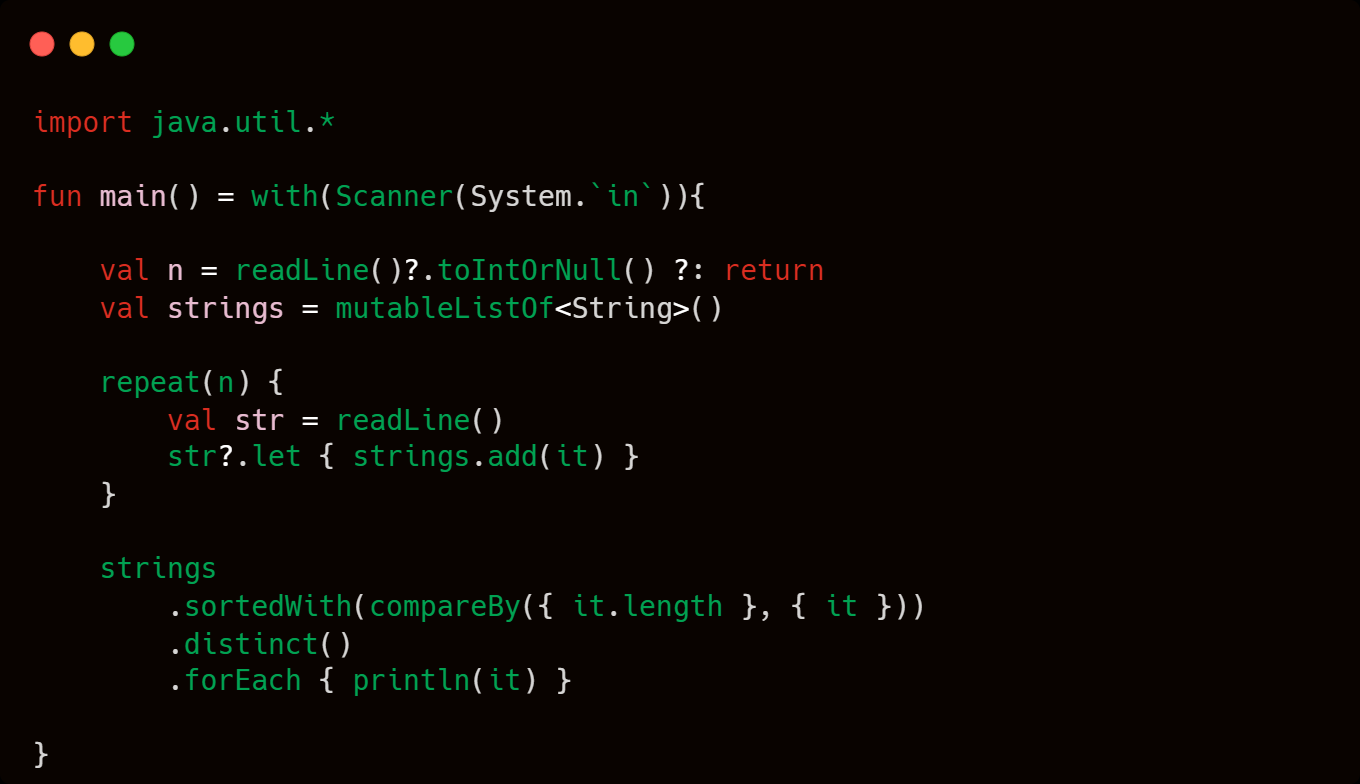 생각하며 서치를 하던 중, sortedWith(compareBy({}, {})) 함수와, distinct() 함수를 알게 되었고, 이를 통해 해결할 수 있었다.